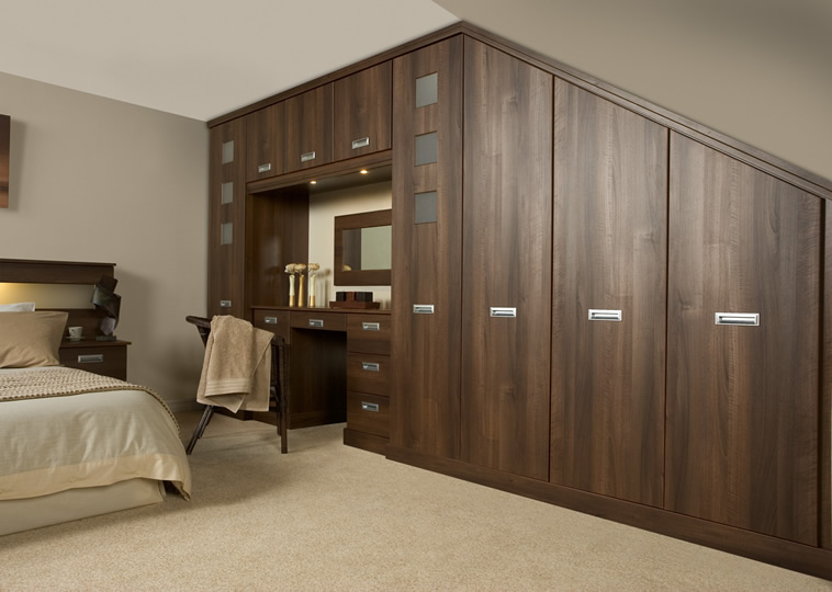 With its inset handle the Dark Walnut door appeals to those who require a clean and modern appearance. Angle doors make the most of all the space.