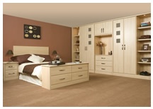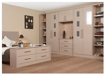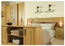 The Pearwood doors with its simple detailing combined with the Pearwood foil creates a bedroom with timeless appeal.